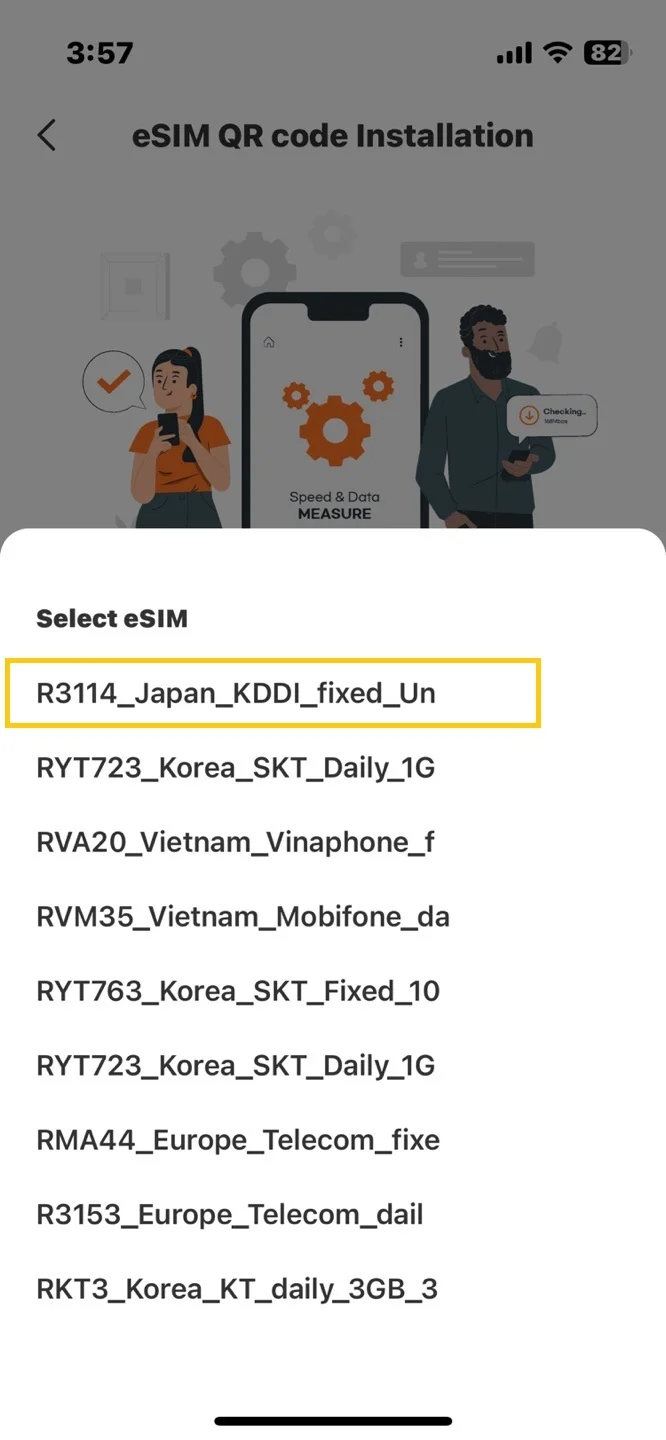 โก Click the eSIM Installation menu. (Works with iOS 16.4.1 or higher.)